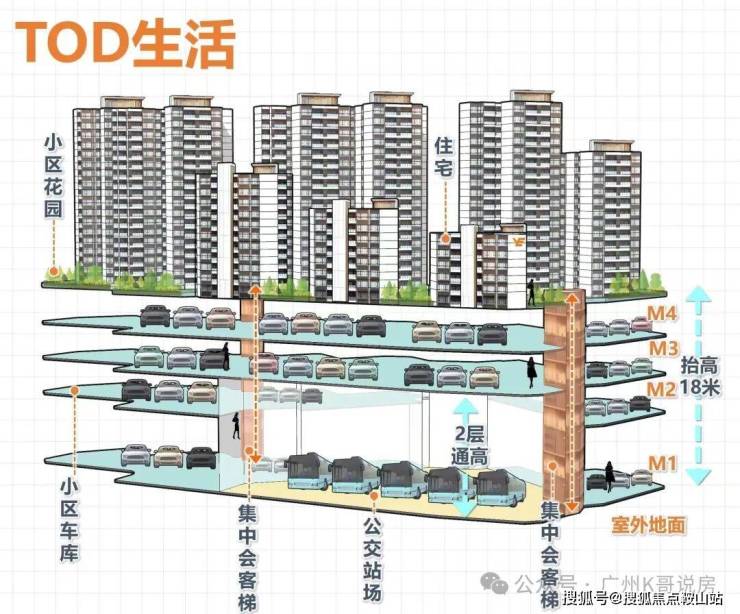【公交】打造首个全新的公交TOD模式,项目整体抬高18米,楼下架空层为阳光观景车库和阳光公交站场,下楼即上车,到站即归家,解决回家最后一公里问题,在车库也可以看一线云山景;