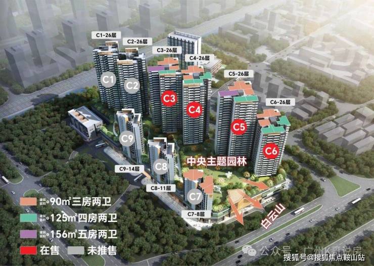 整体建筑楼栋东南倾斜45°,只为最好的瞰山视角和采光通风,每一口鲜氧呼吸,都是来自白云山。