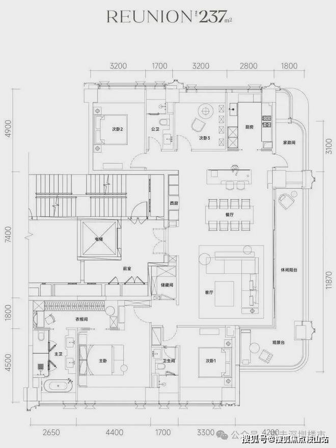 此次推出42套197平与237平大四房户型,专梯专户,可私信看户型图!!!