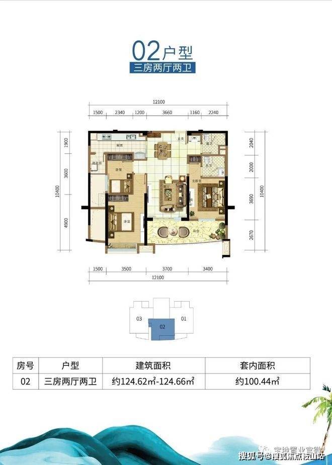 02(中间户):124平米三房两卫(435-455万/套)(少量房源)