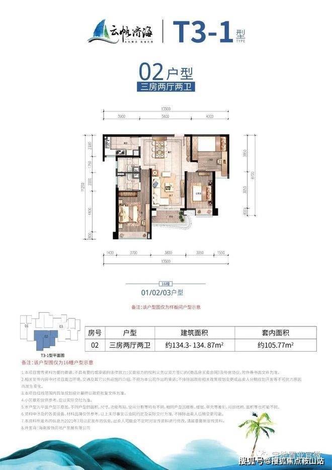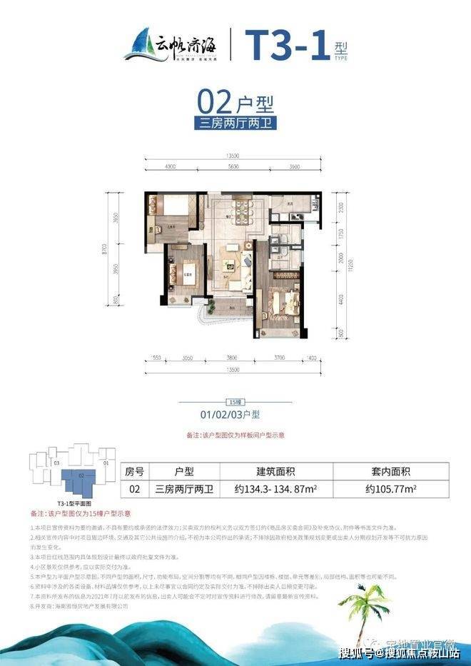 02户型(中间户):134平米三房两卫(383-485万/套)
