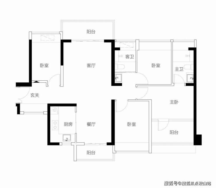 【3栋4栋06户型118㎡4房2卫】 客厅朝西带阳台,2房朝西,1房朝南,1房朝北 单价区间:7.5-7.7万 总价区间:885万-910万