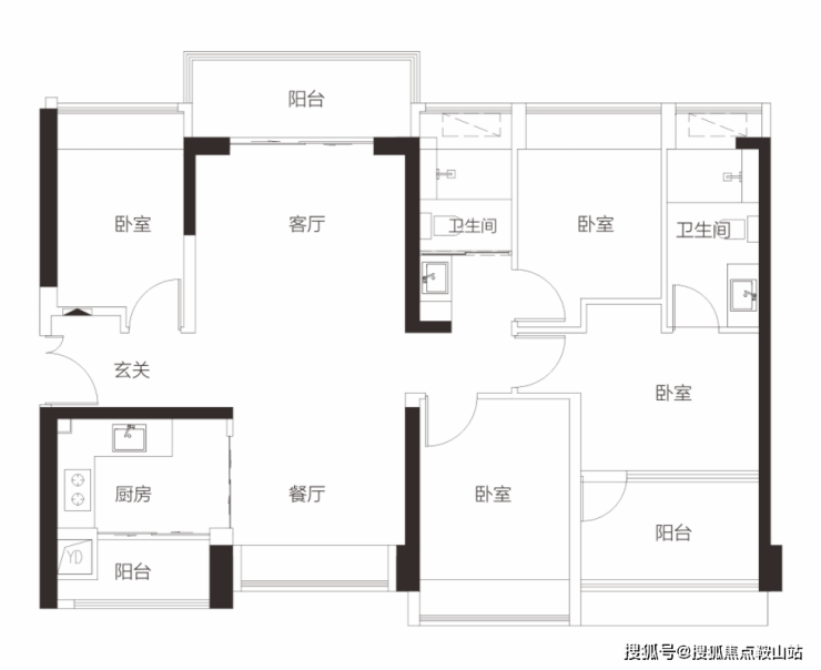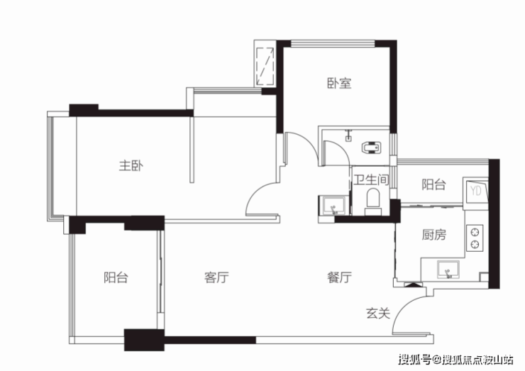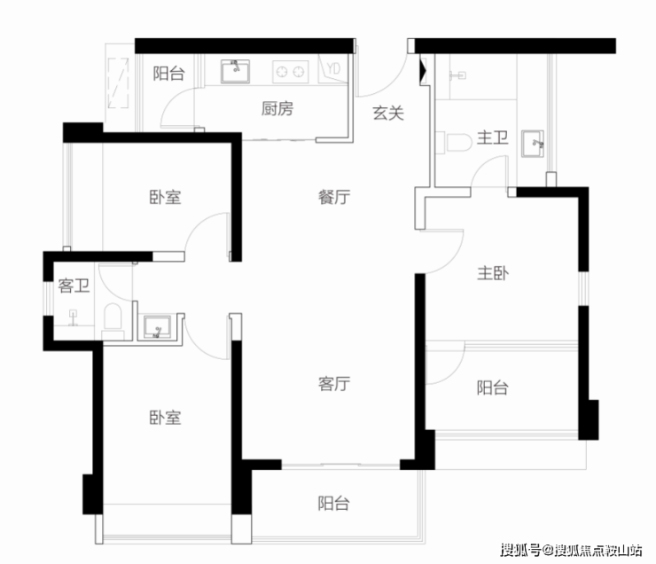 【1栋2栋01户型94㎡3房2卫】 客厅朝东带阳台,主卧朝东,2房朝北