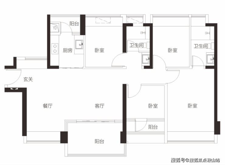 【3栋4栋01/02户型96㎡3房2卫】 客厅朝南带阳台,2房朝南,1房朝西/东 单价区间:7.2-7.5万 总价区间:695-720万