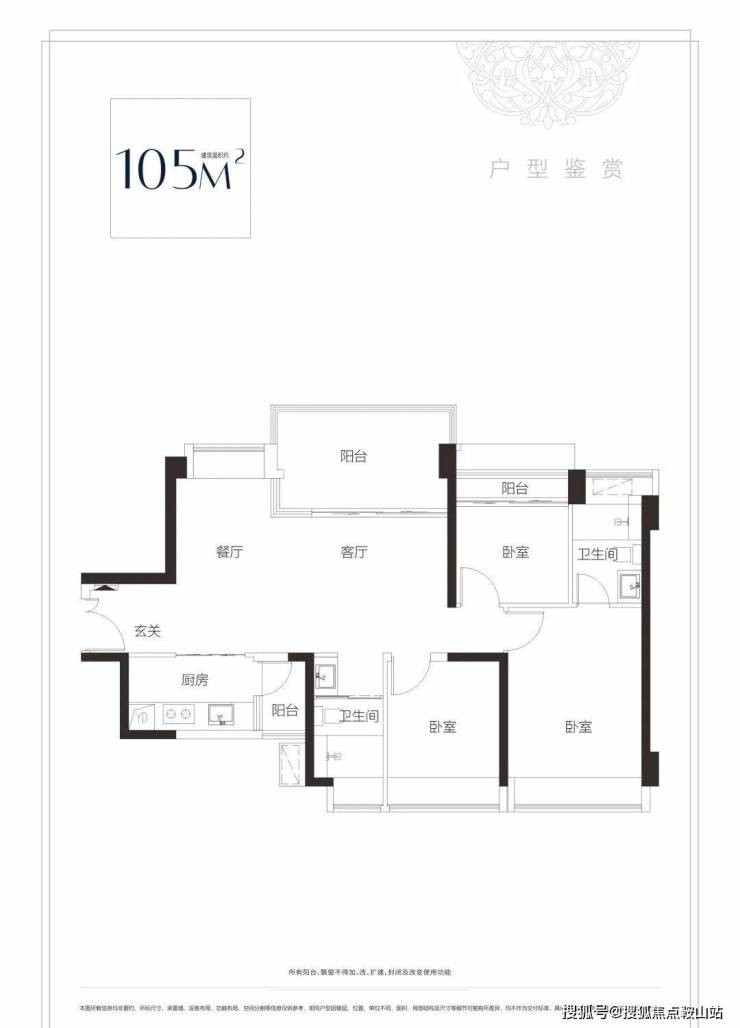 【103-105㎡3房2卫户型】舒适横厅设计,通风采光俱佳 ,超宽景观面,享中心园林景观 单价区间:7.08-7.70万/㎡ 总价区间:743-796万