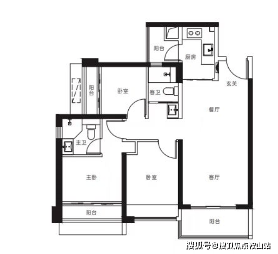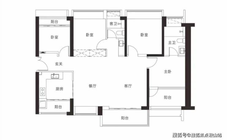 【3栋4栋03户型107㎡3房2卫】 客厅横厅朝南带阳台,主卧朝南,2房朝北 单价区间:7.2-7.5万 总价区间:770-805万