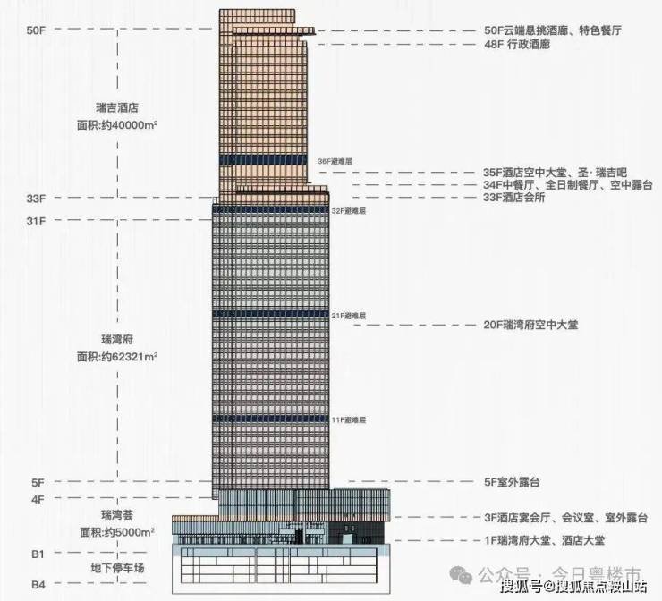 其中:瑞吉酒店位于项目33-50层,系深圳西部首家瑞吉酒店。作为高奢酒店,瑞吉秉承绝对私人的服务标准。