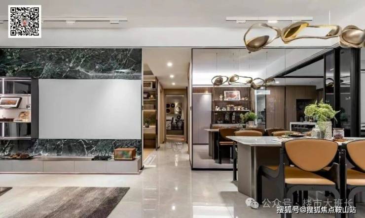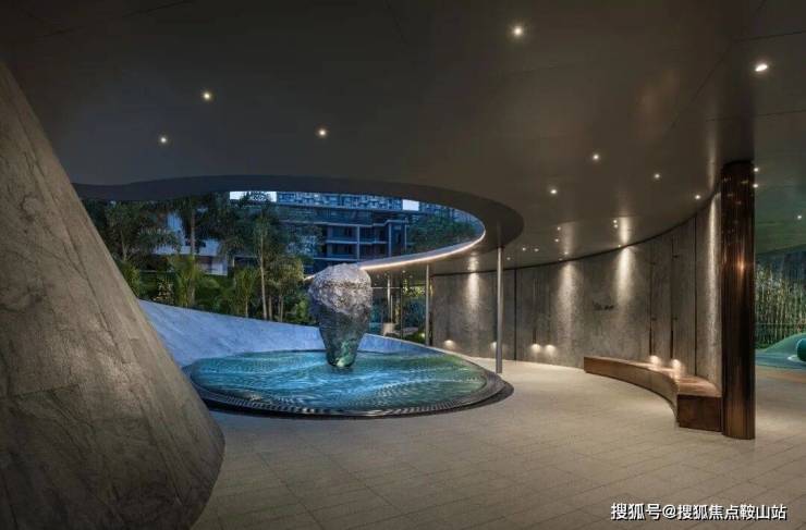 缓步而入,迎宾水景将社区内的山居楼宇倒映其中,艺术廊厅宛若随风跃动的“龙鳞墙”熠熠生辉,演绎静谧而流畅的灵动之美。落客前厅极具现代人文气息的艺术装置映入眼帘,彰显社区自然与人文交融的基调