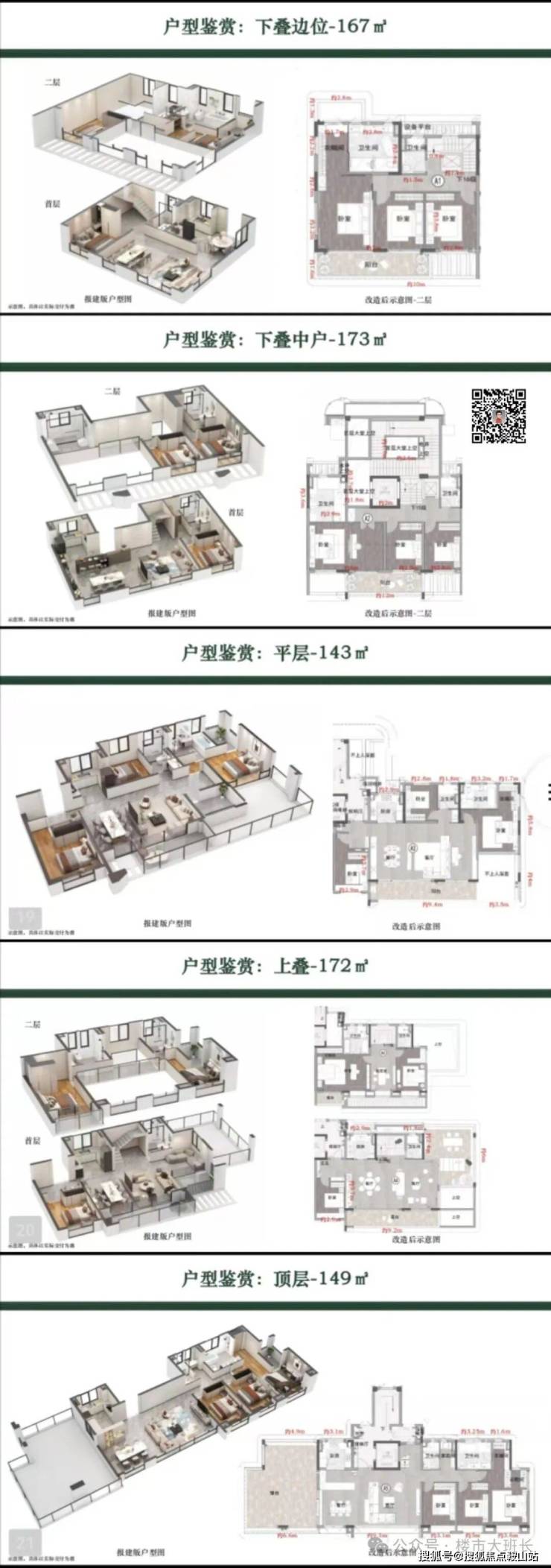 小区分三期开发和售卖,分为平层和叠墅,目前全线产品均在售,以下是小区所有户型布局结构