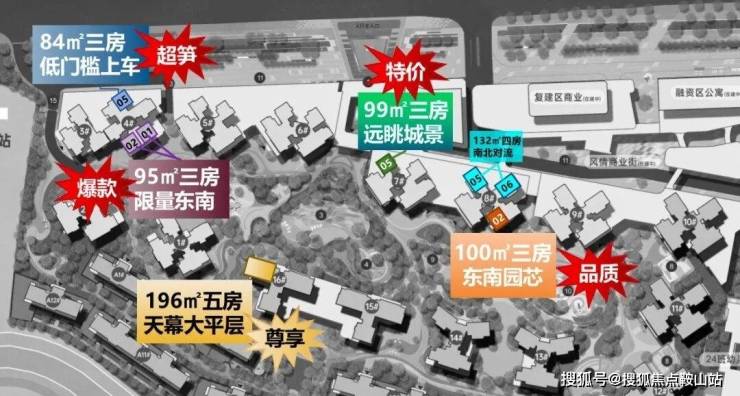 约99㎡3+1房,三开间南向采光,多个房间都预留了飘窗空间,阳台升级到6米等,整体居住体验更好,且380万左右就可上车,适合预算有限的刚需买家