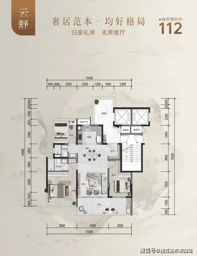作为起步户型, 112㎡产品围绕舒适、收纳、实用去展开,最终拔高产品上限,匹配用户需求。