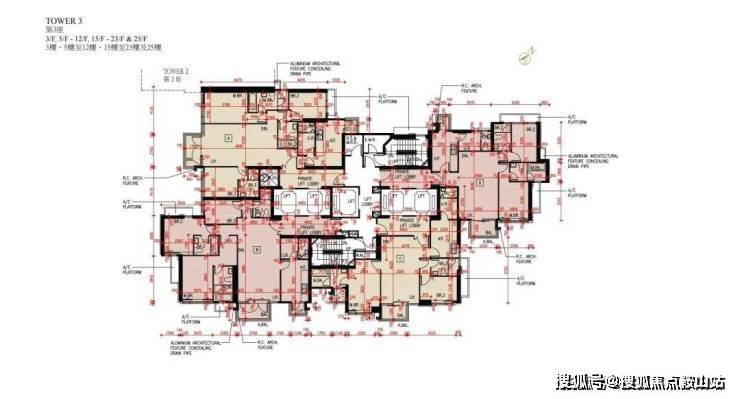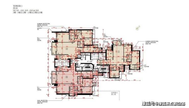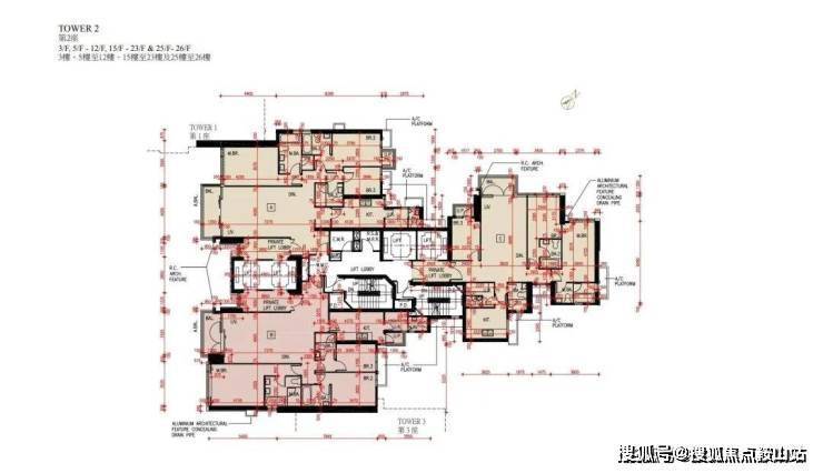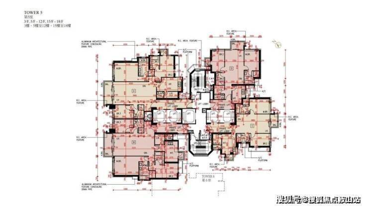 标准分层单位中,两房单位共占121伙,主要分布在T3-T7的C/D户型,848-939尺;三房单位共占254伙,分为三房两套房和三房三套房户型,实用面积1,228-1,447尺;所有户型均设有私人电梯大堂,尽享豪宅尊贵空间。