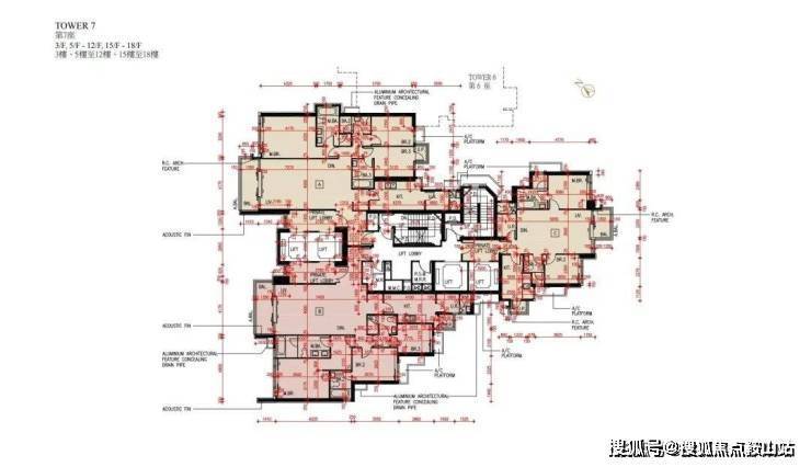 顶层复式户:分布于第1至3座28及29楼、第5至7座20及21楼,实用面积1,691-3,549尺,各配有460-1,018尺天台、94-169尺梯屋、部份设有8-824尺平台。