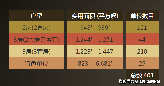 所有座数均不设庇护层,地下或2楼至顶层属住宅楼层,每层各设1至4伙单位,共提供401伙分层住宅。