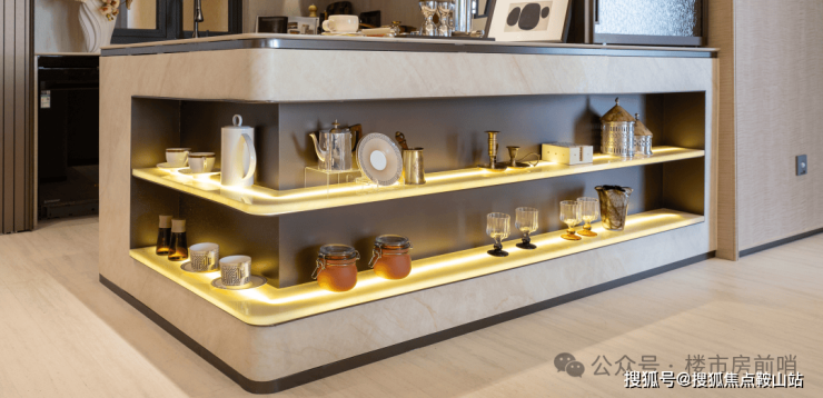 有了这个转折,操作台能兼任餐边柜功能,随手取物更加方便。