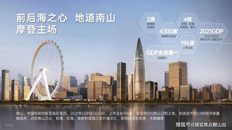 南山汇聚湾区超强总部经济群,2021年GDP达7630亿,上市企业196家,仅全市1/10的人口和土地,占据全市约1/4的经济体量。御成府位于南山心,是