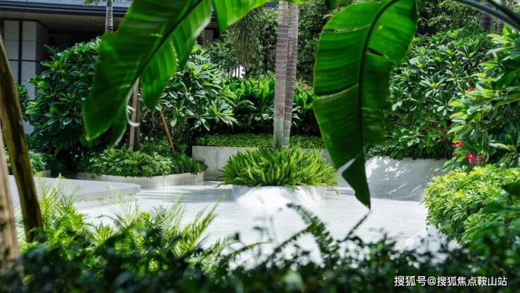 缓缓流动的海浪水景、海礁植物园、约400㎡露天泳池和背后郁郁葱葱的园林,串联而成一条高颜值的艺术中庭,非常符合当下年轻人的审美。
