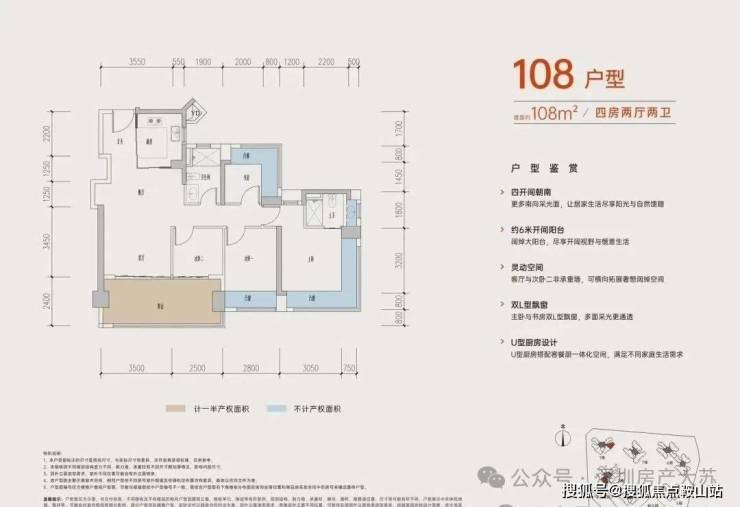 约108㎡竖厅东南侧户型总价约为392-415万。