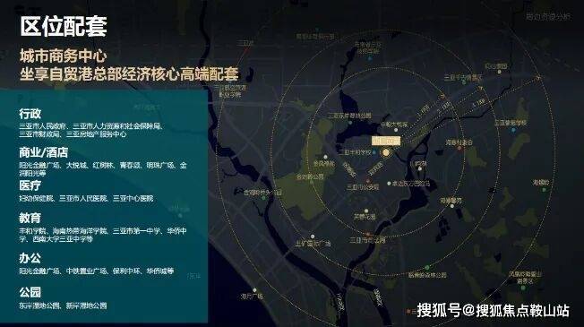 ✈️自贸港交通引擎,陆海空畅通便捷🚘陆:位于迎宾路主干道核芯,距环岛东线高速仅约3公里,距三亚动车站约5公里。🛳海:距三亚湾约4公里,直线距离三亚凤凰岛国际邮轮港约6公里。🛩空:直线距离凤凰机场约13公里。【项目鸟瞰图】