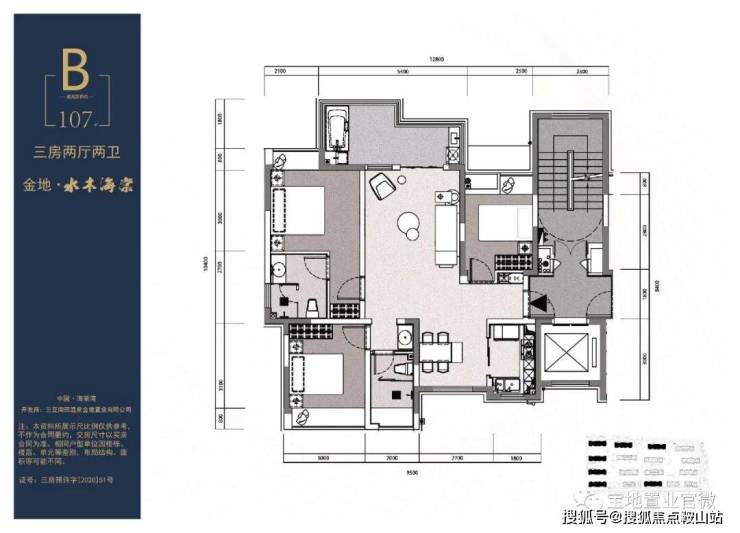 主力户型B户型:建筑面积约107㎡; 3房 2厅 1厨 2卫 大阳台 入户泡池纯板式 一梯两户 南北通透 精装拎包入住