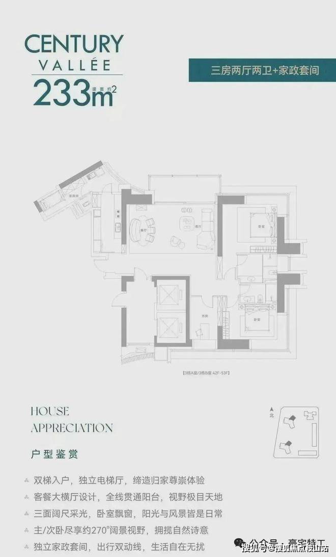 前两次都是公寓,现在住宅首发!还是定位相当高端的纯大平层而且还是无敌景观视野,8梯3户,233㎡/280㎡配备两个独立电梯,386㎡双梯设计,实在任性!