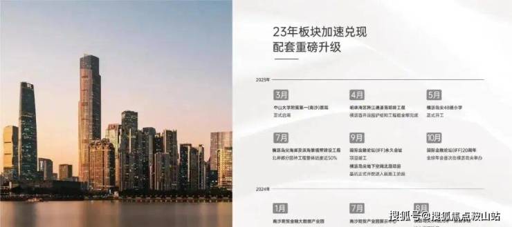 IFF 永久会址建成并投入使用、广期所南沙产业园建设中,中山一(南沙分院)已正式运营,全国最快18号线线落地(已开通运营),四站到珠江新城,多个重点设施配套加速落地红利兑现。
