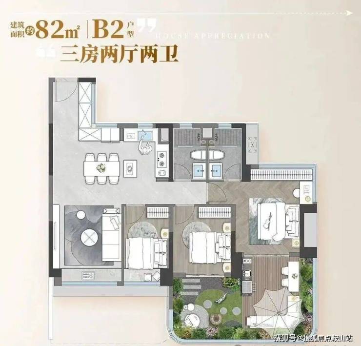 别人的85㎡做小三房一卫,招商的82㎡能做3+1房,未来在二手市场上也会更加有优势。