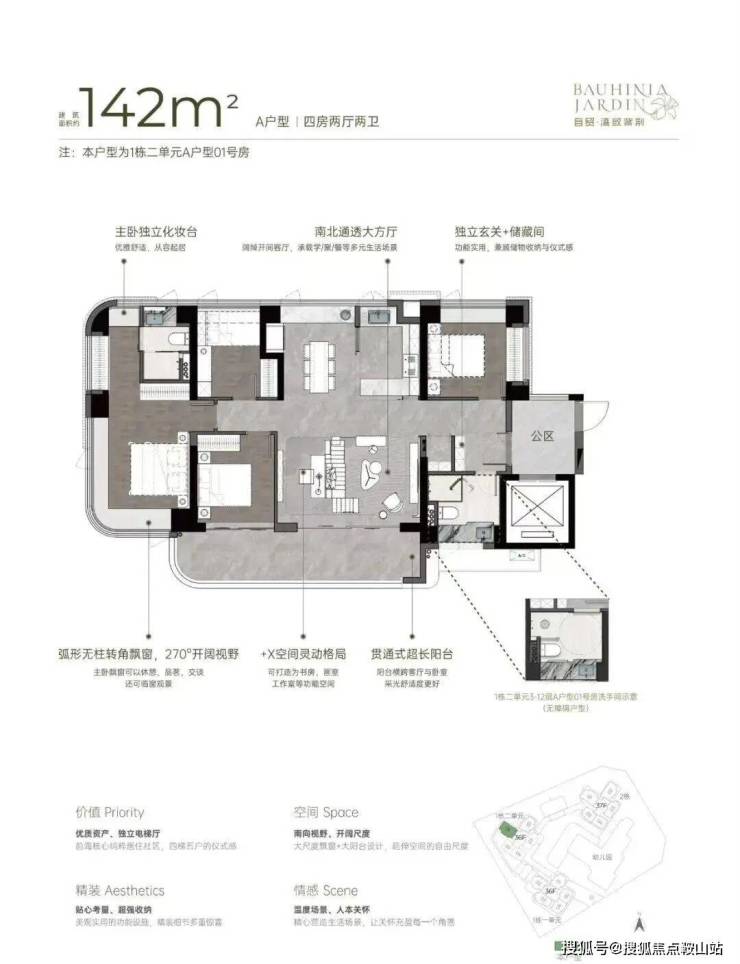梯户比:4梯5户,独立电梯厅设计