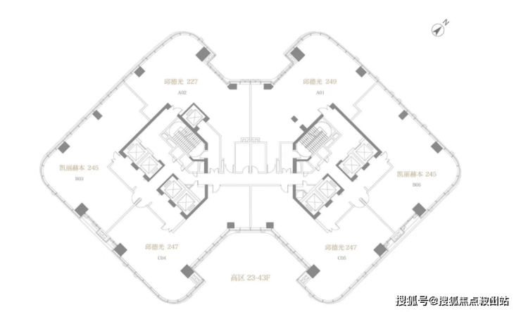 方胜纹双核心筒的设计使得整栋建筑更加高效和私密,并实现了双专梯电梯入户,为塔尖人群高效的工作和私密的生活而服务。转角处曲线设计,拓宽了整个建筑界面,使得建筑拥有270°转角无柱开放式观景视野。是塔尖人群拥揽深港的极佳观景台,足以盛放您帷幄城市的雄心。