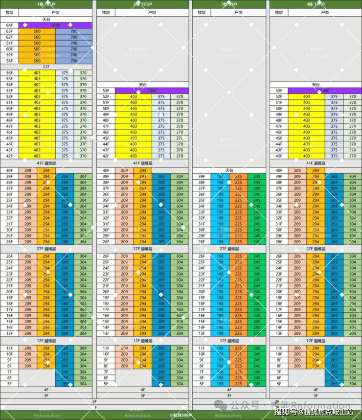 超高区57F起(200米以上)是约500-700㎡顶级大平层;