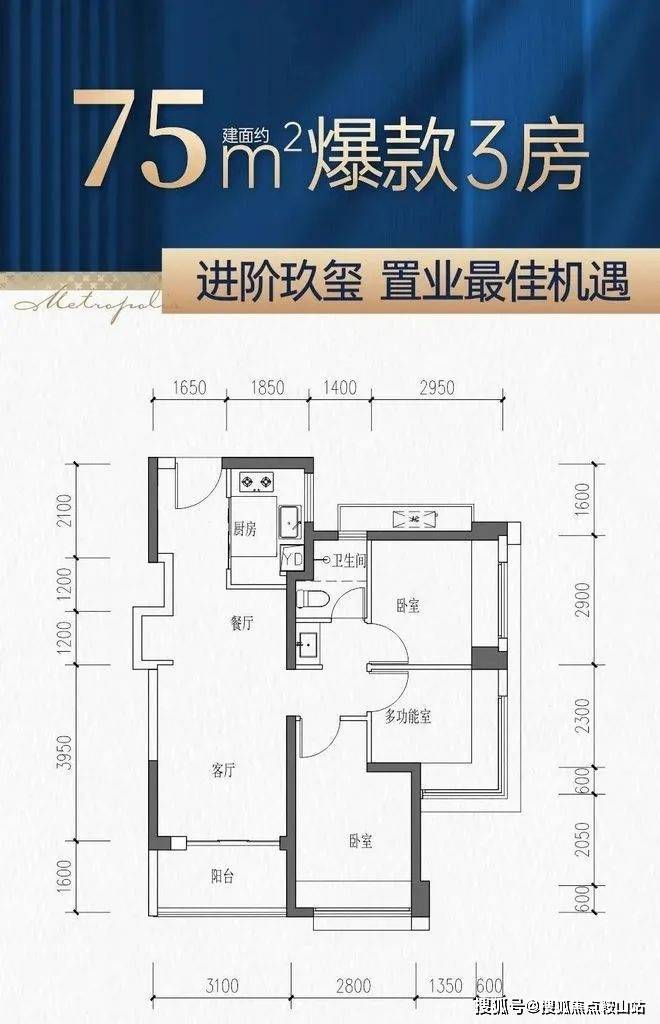75㎡的3房2厅1卫,折后总价347-373万/套,单价4.61-4.94万/㎡。