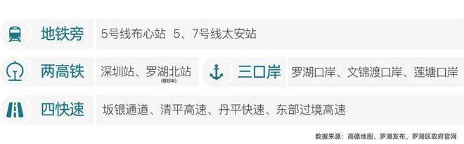 距5号线布心站250m、5/7号线太安站500m,近享2高铁、3口岸、4快速;三大口岸年通关5876万,地铁旁享深港海量商机人流。