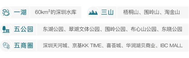 一湖三山:浓缩深圳水库、梧桐山、淘金山等生态资源稀缺性;