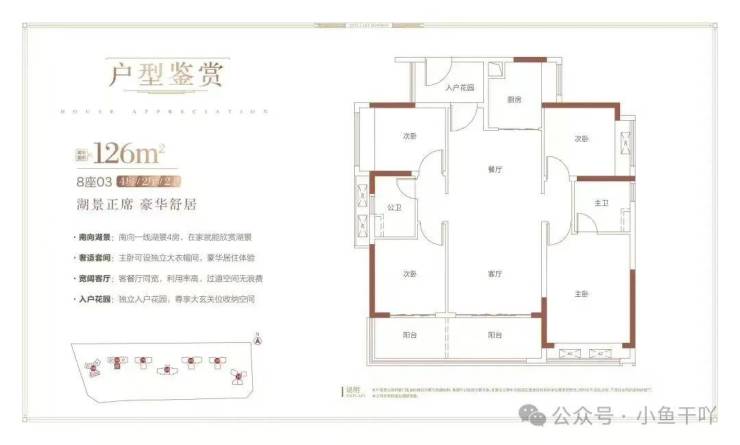 总建面12万㎡低密度住宅,户户朝南,一线湖景,自带3万㎡现代奢侈艺术园林,层高3.05-3.15米,每层楼抬高约30厘米层高,让采光、通风、视野更高一筹、尽享至高空间感!