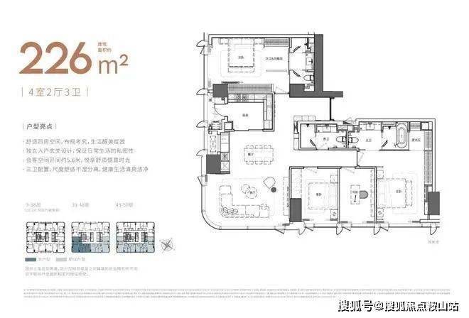 总建筑面积:建面约10万m²◎公寓可售面积:建面约3.3万m²◎户型建筑面积:建面约88-226m²◎建筑总层数:50层◎公寓层数:9-50层(1-8层为商业)◎总套数:284套◎总车位:477个◎公寓管理费:8.6元/㎡/月◎项目地址:深圳市南山区蛇口港湾大道和太子湾大道交汇处东南侧