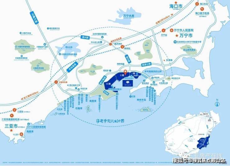 项目与高铁神州站直线距离仅约6公里,2站即达三亚、5站即达海口,约6公里即达海南环岛高速神州半岛匝道出入口,约10公里即达兴梅大道,轻松环游全岛。往北约53公里即达琼海博鳌机场,乘高铁5站即达三亚凤凰机场(约110km)、4站即达海口美兰机场(约150km),全国主要城市航班直飞。