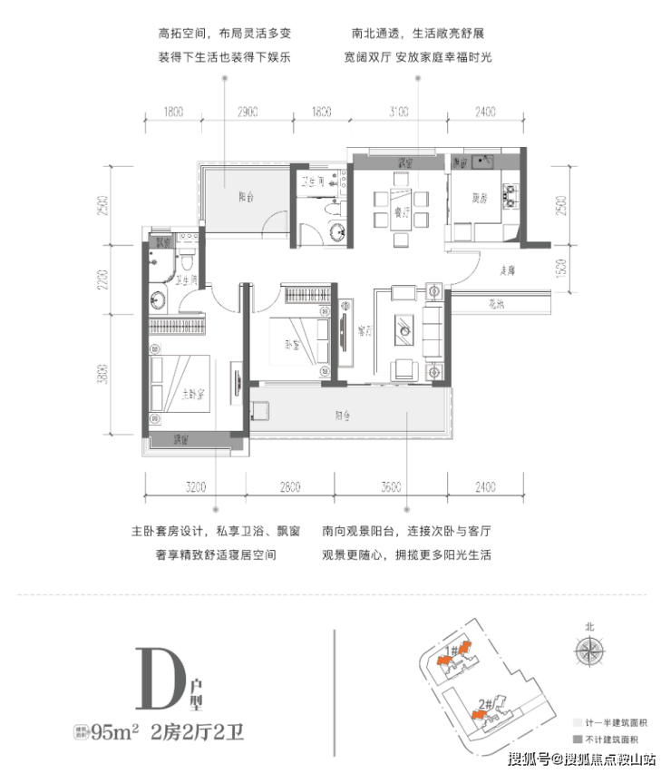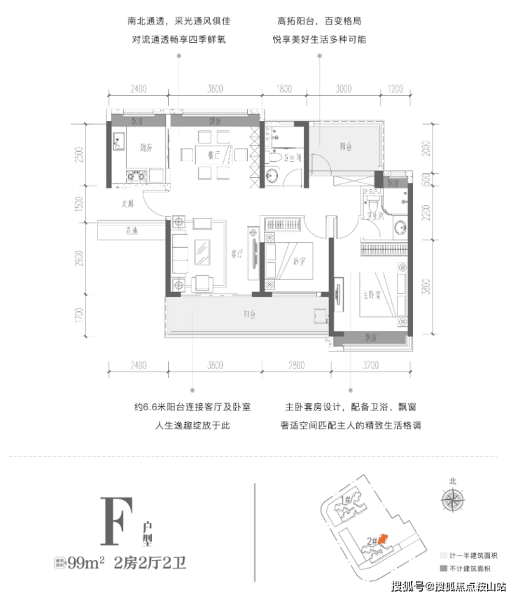 建面约95/99㎡2+1房