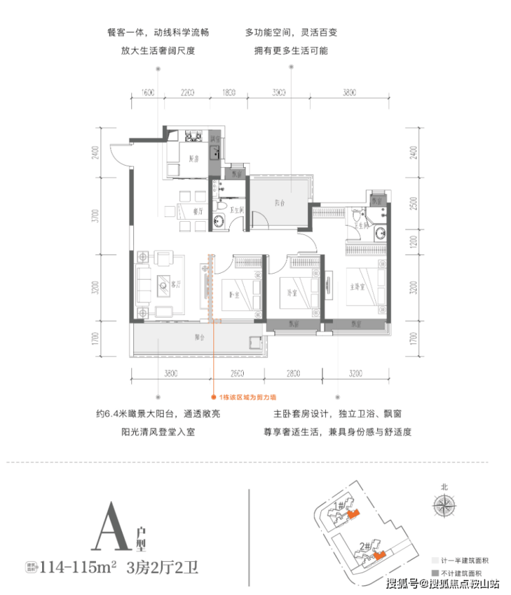 建面约115㎡3+1房
