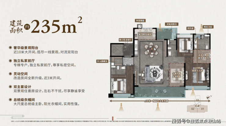 保利华南3.0豪宅时代,235产品升级,最具尺度感的餐厨客一体空间,超强总统套房级主卧,得房率超高产品