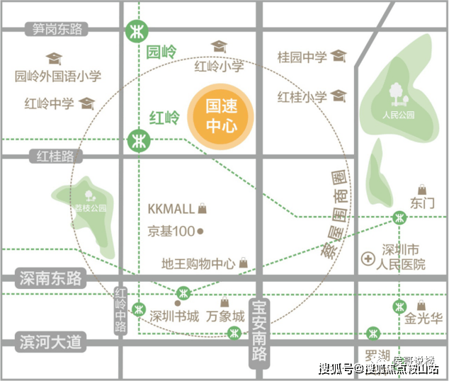 项目坐落于广东省深圳市罗湖区宝安南路3039号,靠近地铁3号线、9号线(红岭站)和地铁9号线(园岭站)。