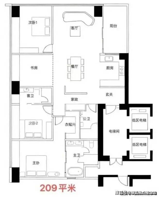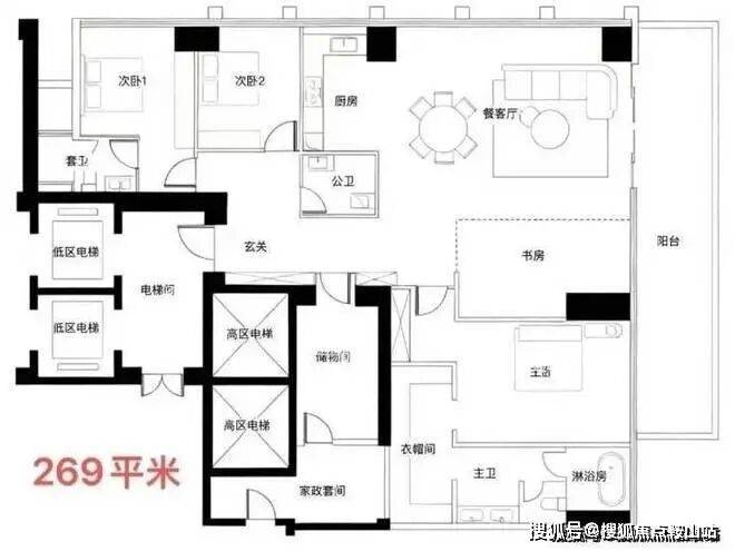 住宅面积约209-269-294-304平,高区约370-375-403平,超高区约500平-700平-1050平
