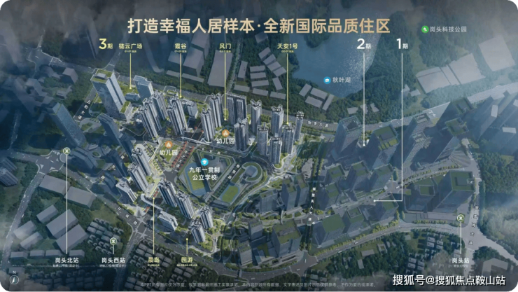 业态包含住宅、人才住房、产研、公寓、商业、中小学校幼儿园、公园等多维业态,打造幸福人居样板,全新国际品质住区,拥有山湖景观的国际化综合产城社区。