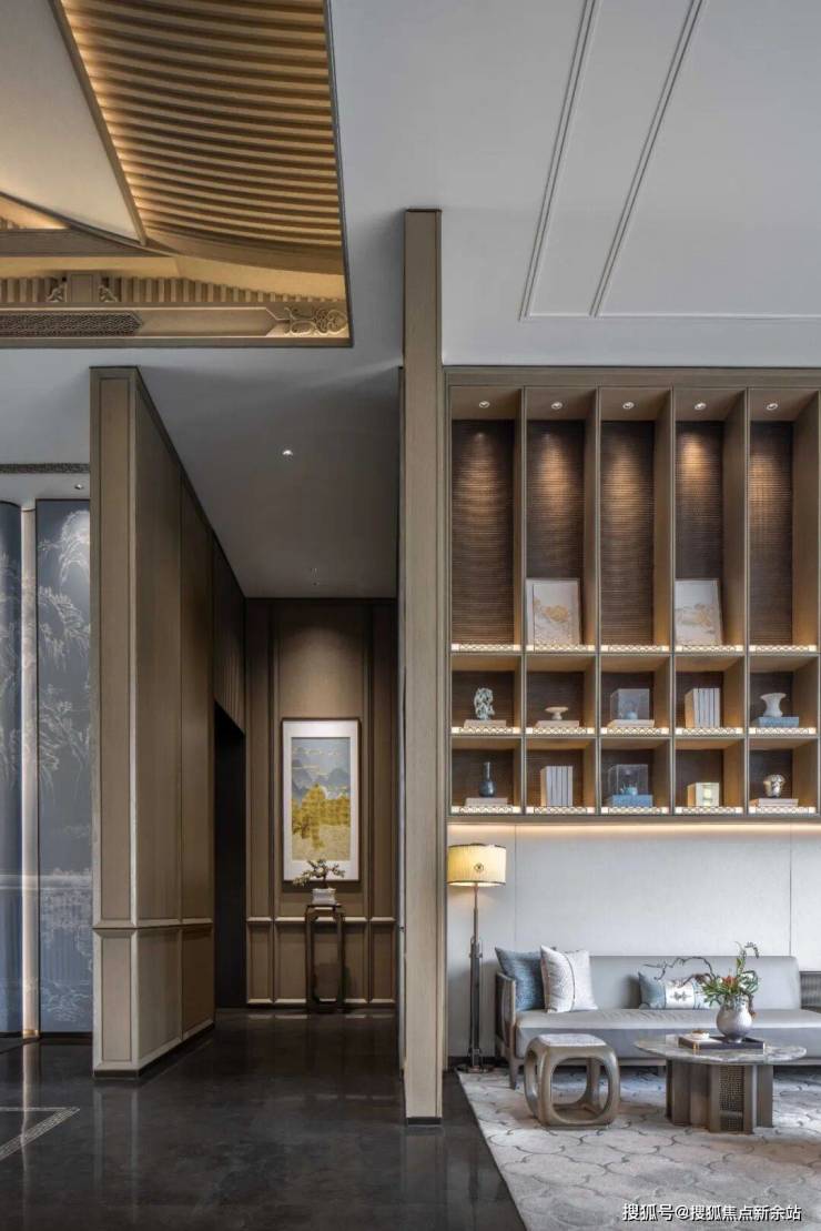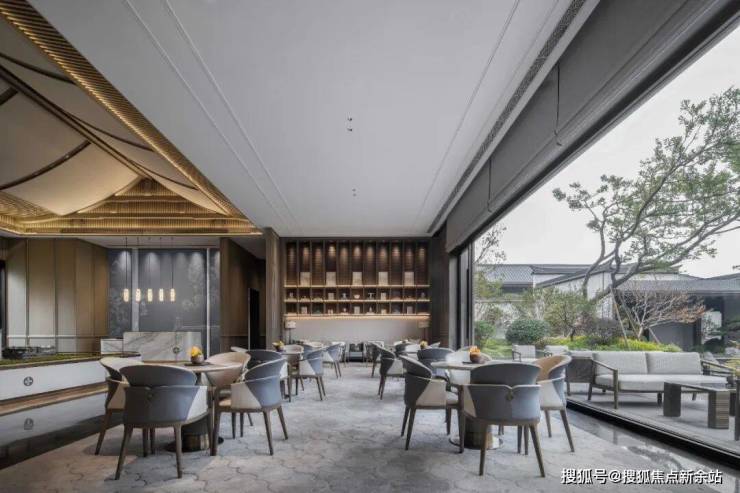 消弭独立的三大界面,“无界”初衷因“消隐”做法促成景观、建筑、室内的互渗相“融”;以简化繁,寄托东方逸趣的造物表达为现代设计的概括形式,退让乃见空间疏朗写意。