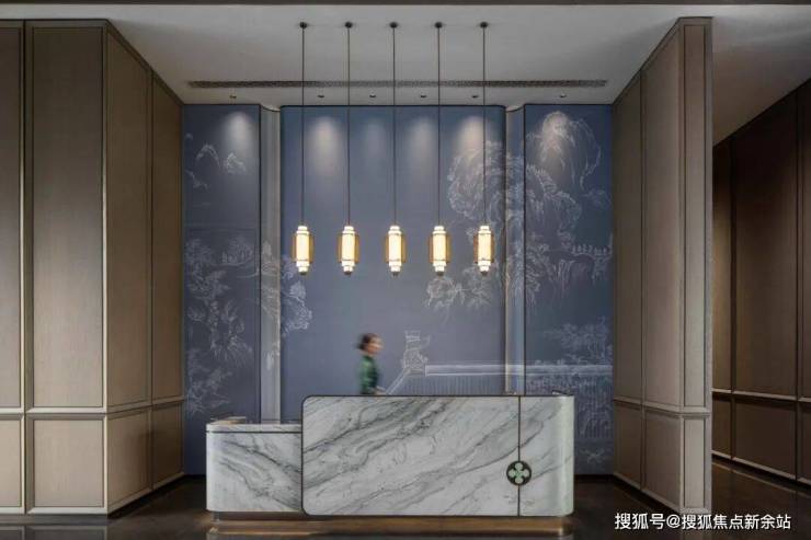 简括造型的水吧台,主次有序,半围柔和;清冷石面随机纹理渐变宛如晕染效果,于材质、色泽述说空间的“品质感”。