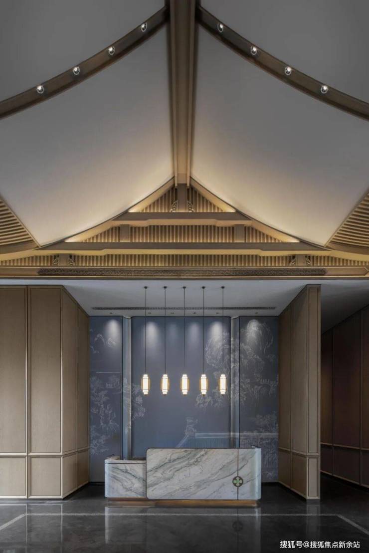 中式建筑庄正、典雅,于外,表达为“飞檐斗拱”的精巧;于内,则演绎了“山形”架空内拱的特征。