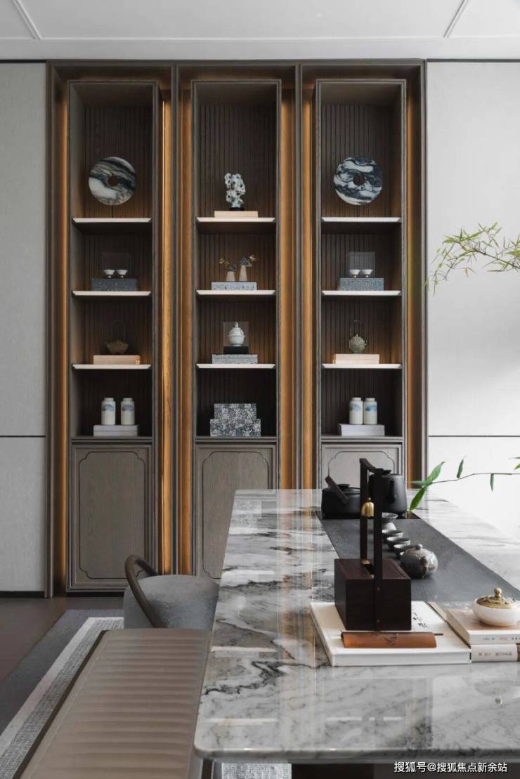 一炉“禅悦”香袅袅,一泡新茗味冲淡;盆景植绿两枝,背倚幽径铺碎石……东方古风的诗情画意,碰撞当代设计前沿理念;彼此借景,交织悠然意境。