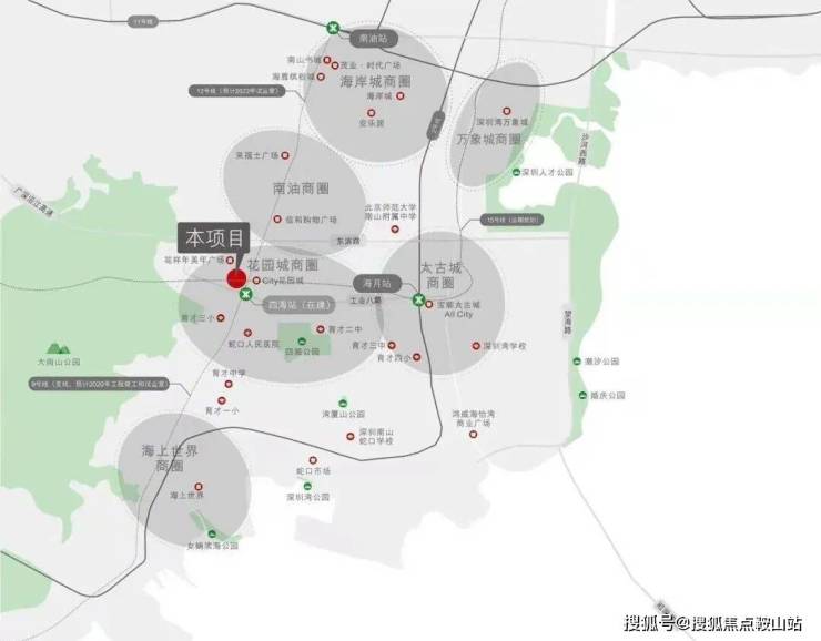 轨:双地铁无缝接驳(12/15号线四海站)本项目地下商业,已开通的12号线连接西部发展轴,未开通的15号线全长约27km,被称为前海环线;