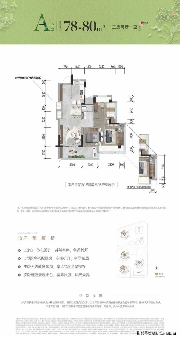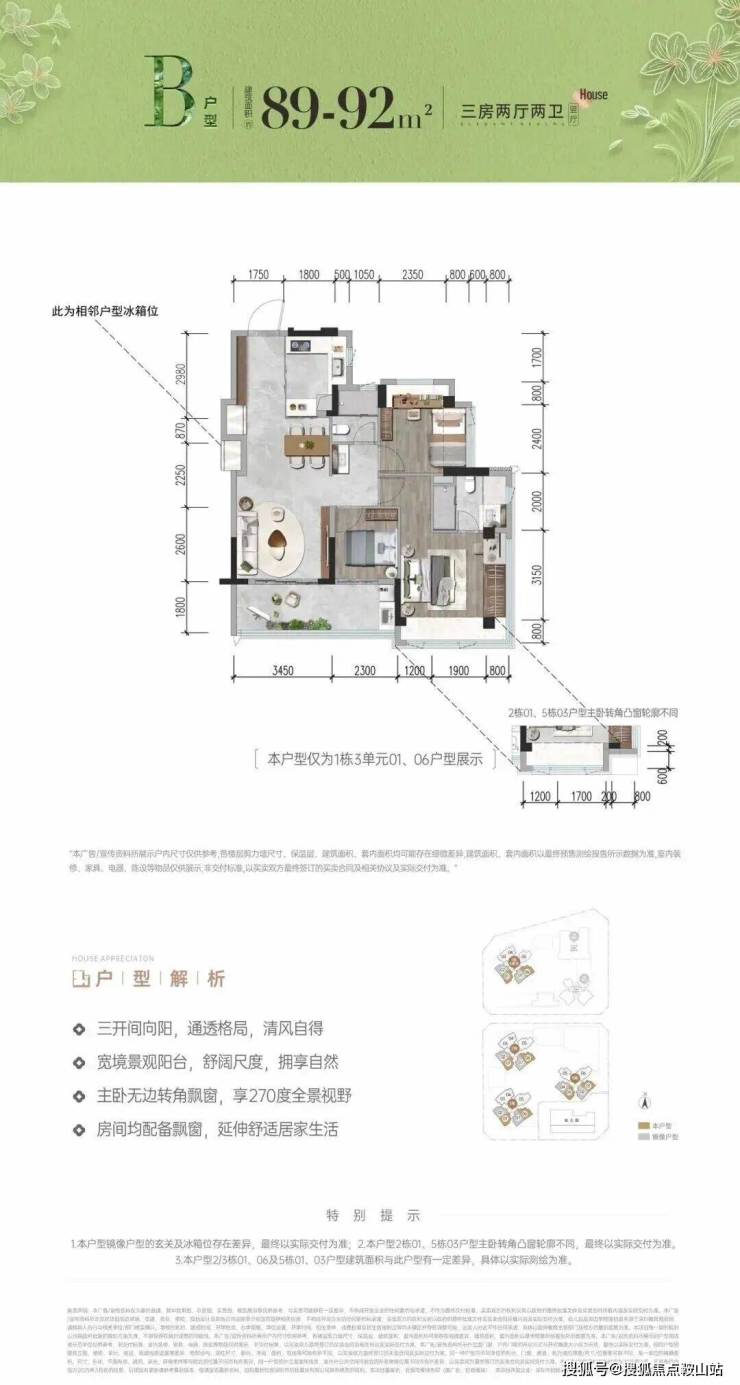 首次推首北地块1栋3单元,约80-92㎡ 3房,共195套,新规使用率高达96%-105%!