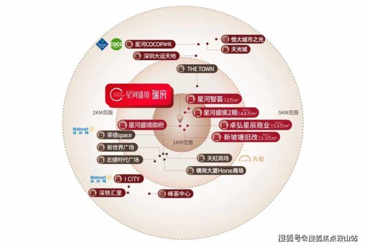 约5公里范围:尽揽百万㎡商圈,星河COCOPark(龙岗山姆会员店)、大运天地、恒大城市之光、天光城等知名商业体环伺,畅享都市繁华便利。