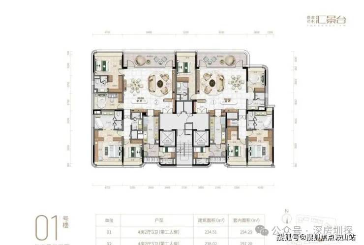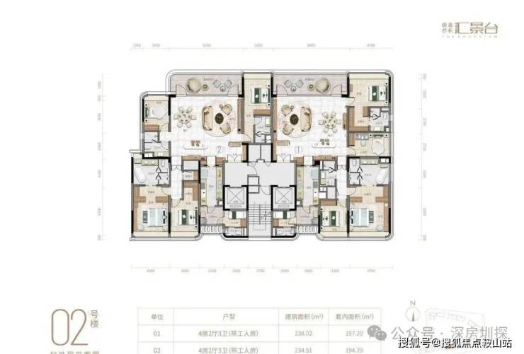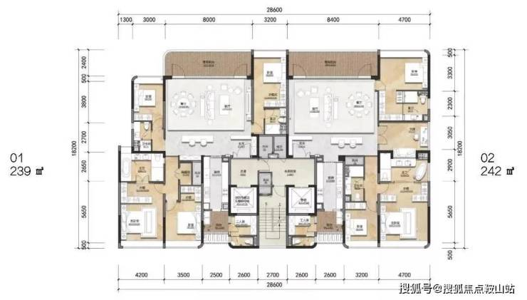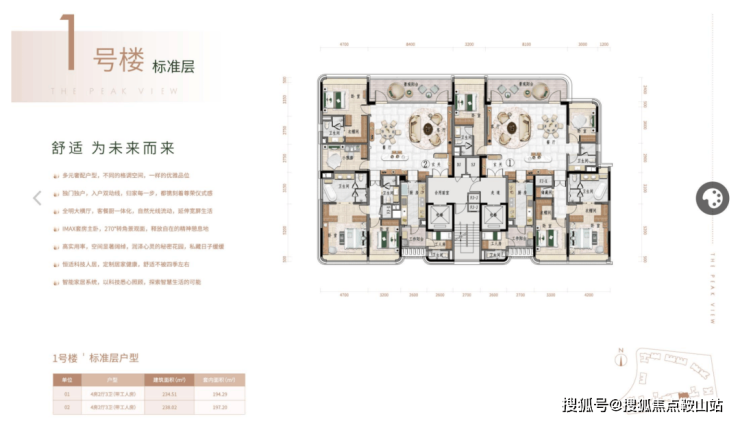 整个小区都是板楼设计,其中1栋和2栋都是2梯2户的大平层,而3栋和4栋则是3梯3户的大平层。由于公共空间的巧妙设计,每户都可以达到独梯独户的效果,从而提高了居民的隐私性。